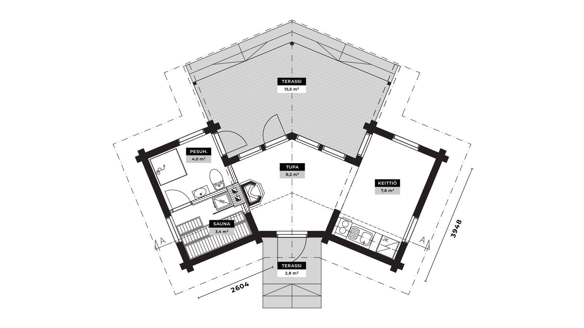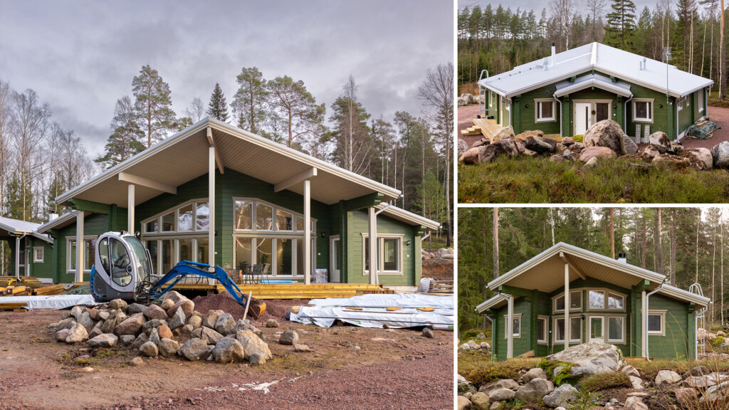 Talo on rakennettu hirsivalikoimamme paksuimmasta LHM 275 hirrestä, saunarakennus LHM 202 hirrestä ja autotalli on toteutettu LHM 135 hirrellä.