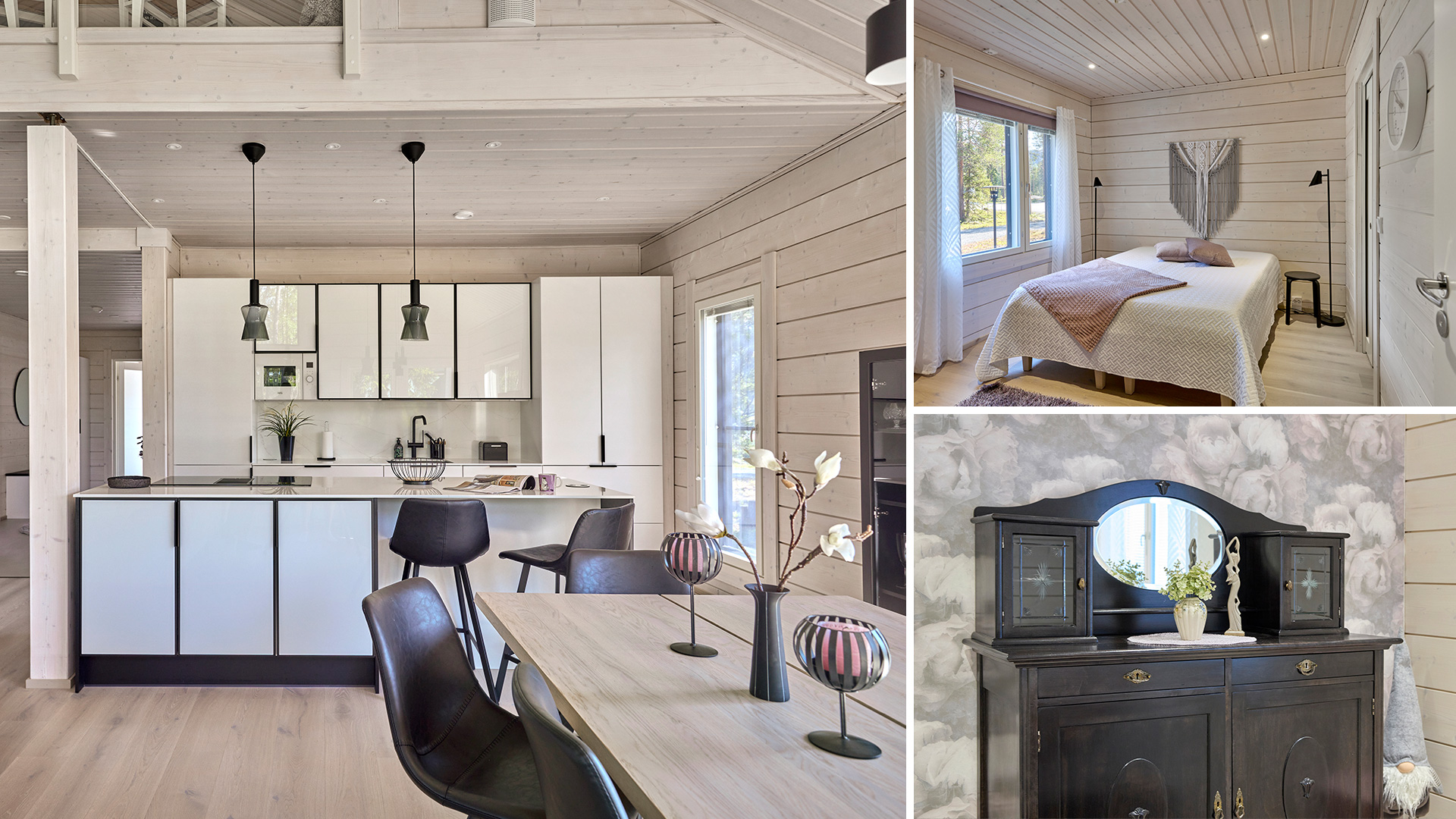 Selkeä ja vaalea sisustus on täysin Hannelen käsialaa. Sisustaminen on hänelle mieleinen harrastus, joka palkitsee aikaa kotona ja huvilalla viettäessä. Kauneudesta nauttii.