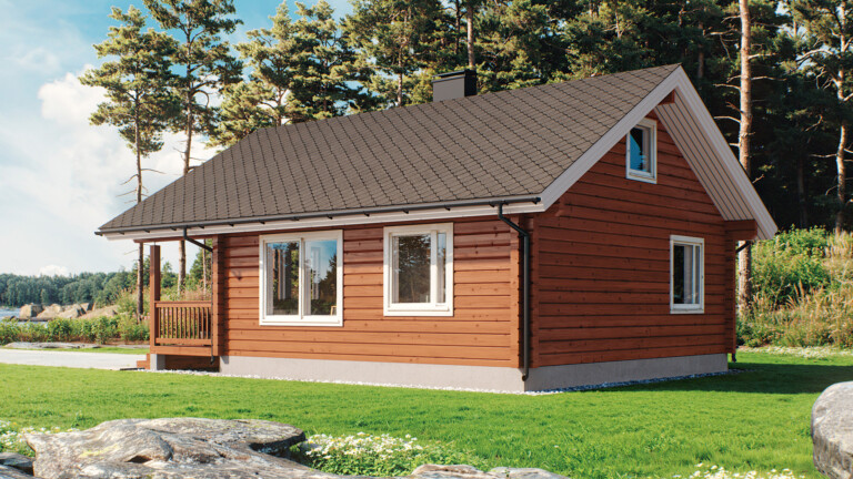 Kaarna 46P är en funktionell timmerstuga som smälter väl in i det nordiska landskapet. Den kompakta planlösningen erbjuder allt som behövs för fritidsboende och lämpar sig även för vinteranvändning. Modellen kan utföras utan loft.