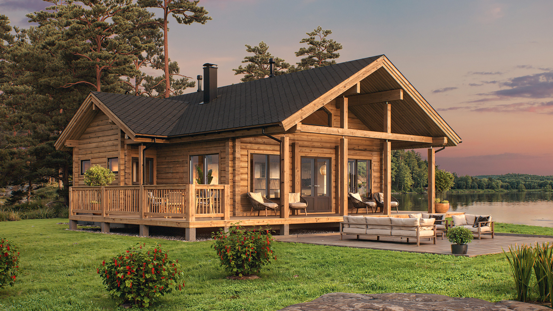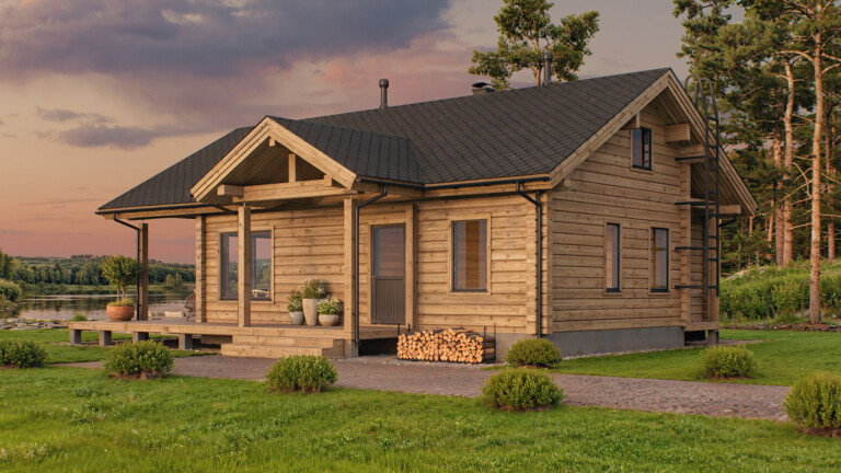 Onkamo är en timmervilla där smart planering och trivsel möts i en välbalanserad helhet. Det höga och luftiga allrummet med kök utgör hemmets hjärta och fylls av dagsljus från generösa fönster. Loftet och de rymliga terrasserna gör modellen väl lämpad för fritidsboende och längre vistelser.